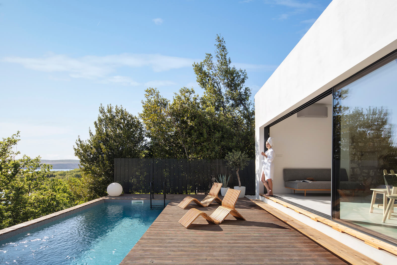 AB61 is a design house created just for two – a stunning minimalist oasis right by the sea. Enjoy your own private garden and heated pool with a stunning view.